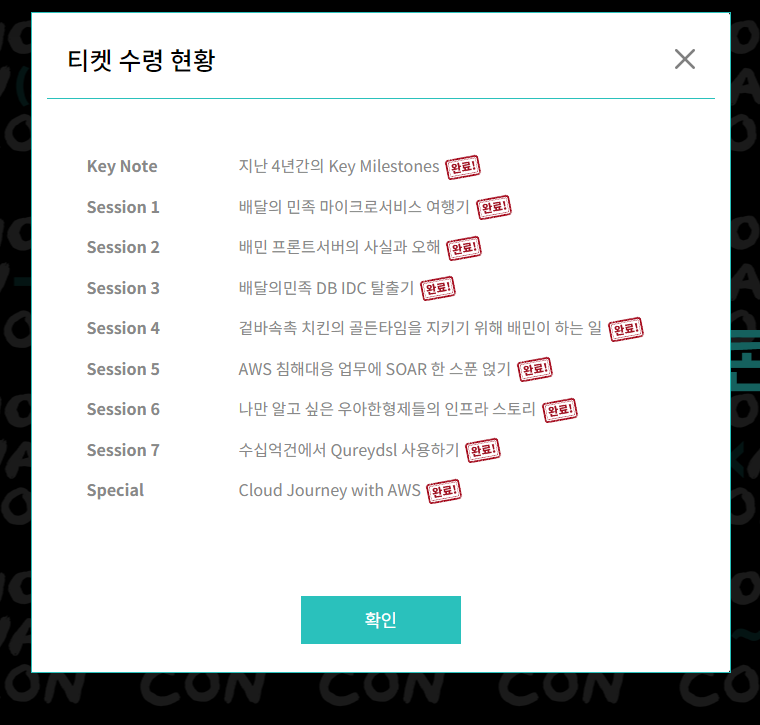 온라인으로 이렇게 돌아다니면서 각 세션 스테이지를 방문하는 듯한 느낌을 받는 건 처음이다. 기념 티켓도 모으고, 참석하는 내내 재밌었다.